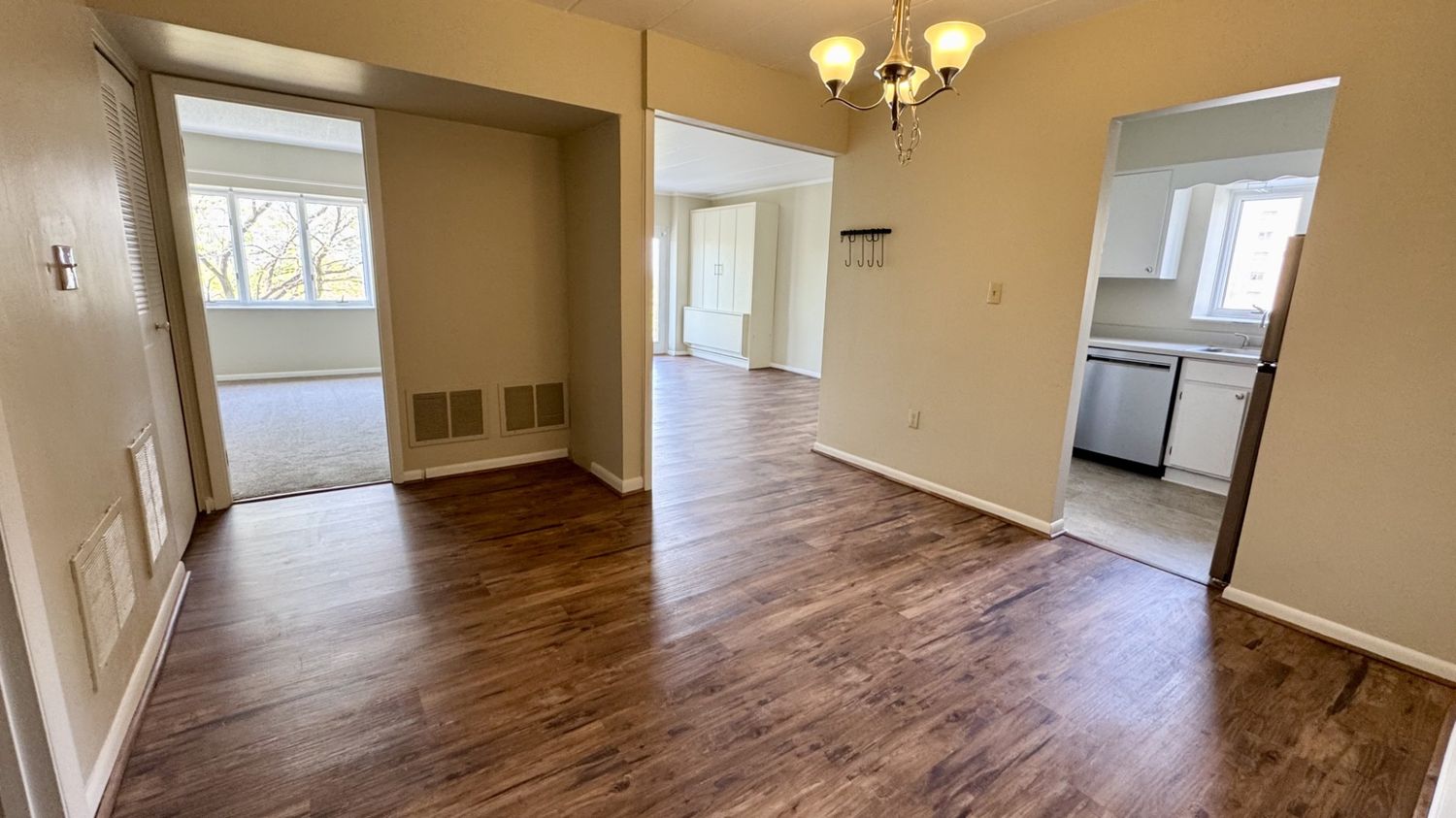 $615Come and see all that this condo has to offer! Upon entering, you are greeted by a spacious foyer with ample natural light. The open floor plan seamlessly connects the living room, dining area, and kitchen, making it an ideal space for both entertaining and relaxing. The home boasts a large primary bedroom with a walk-in closet. Another highlight of this home is the versatile living room, which includes space for a home office. The attached Murphy bed provides additional bedroom space if required. This space allows for customization to suit your unique lifestyle needs. The living room features large windows with a French door that flood the space with natural light, creating a warm and inviting ambiance. The deck offers a charming spot for morning coffee. Lush greenery and mature trees enhance the tranquility of the space, providing a peaceful escape. The kitchen is equipped with upgraded appliances. This unit also includes its own laundry room. Conveniently located with easy access to shopping, dining, and recreational activities, this home offers an exceptional living experience. Experience the perfect blend of comfort and style in this thoughtfully designed space, ready to welcome you home.